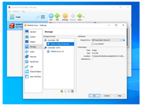 Select Redhat and then click on -> settings -> storage and click on controller:IDE select the iso and click ok