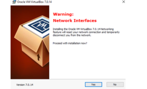 On the next screen, you’ll see a warning about networking. The setup process will install a virtual network adapter, which may cause your network connection to disconnect momentarily. Click Yes to continue.
